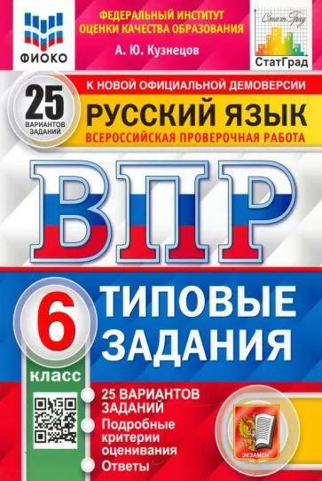 Русский язык Всероссийская проверочная работа ФИОКО. СТАТГРАД 6 класс 25 вариантов. ТЗ. А.Ю. Кузнецов (2024)