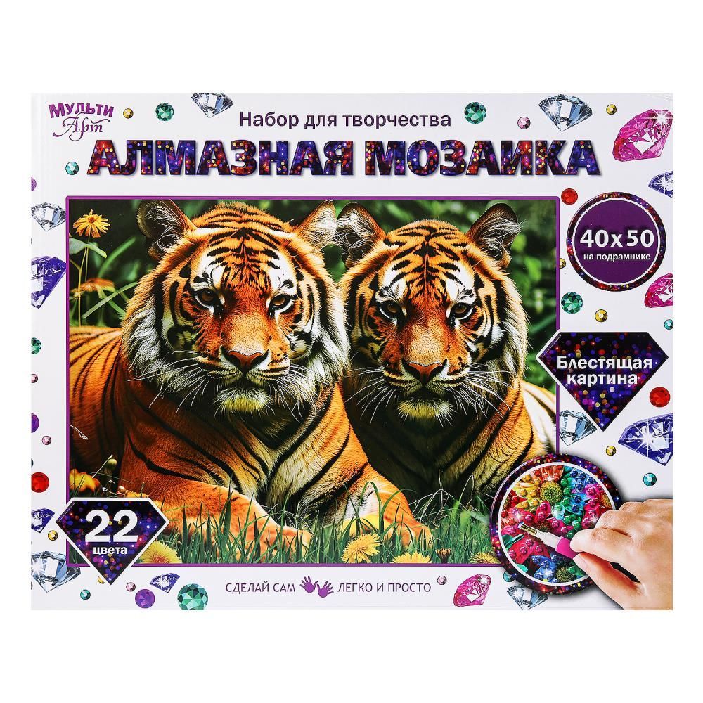 Алмазная мозаика 40*50 с подрамником тигры МУЛЬТИ АРТ
