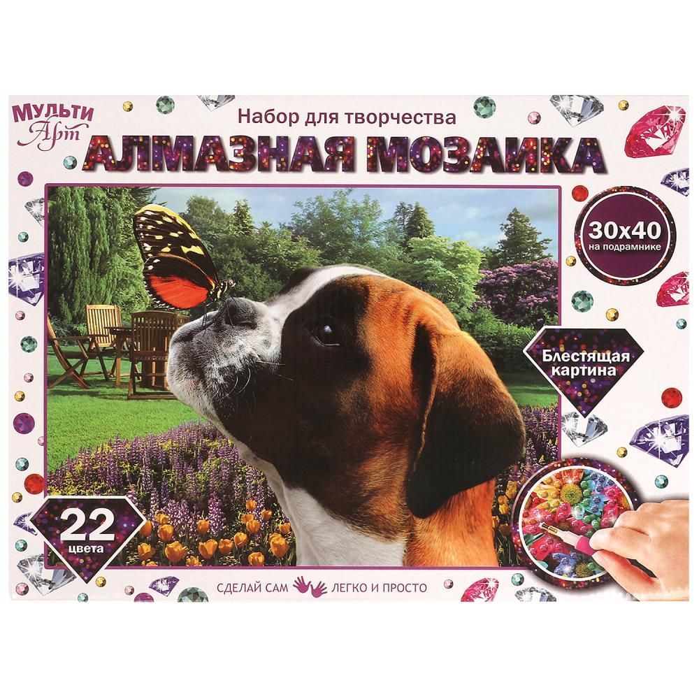 Алмазная мозаика 30*40 см с подрамником собака и бабочка МУЛЬТИ АРТ