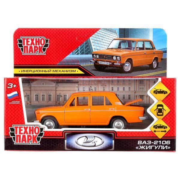 Машина металл ВАЗ-2106 ЖИГУЛИ 12 см, двери, багаж, инерц, оранжевый, кор. Технопарк