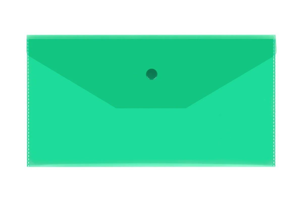 Папка-конверт на кнопке Планета книги С6, 180мкм, пластик, прозрачная, зеленая
