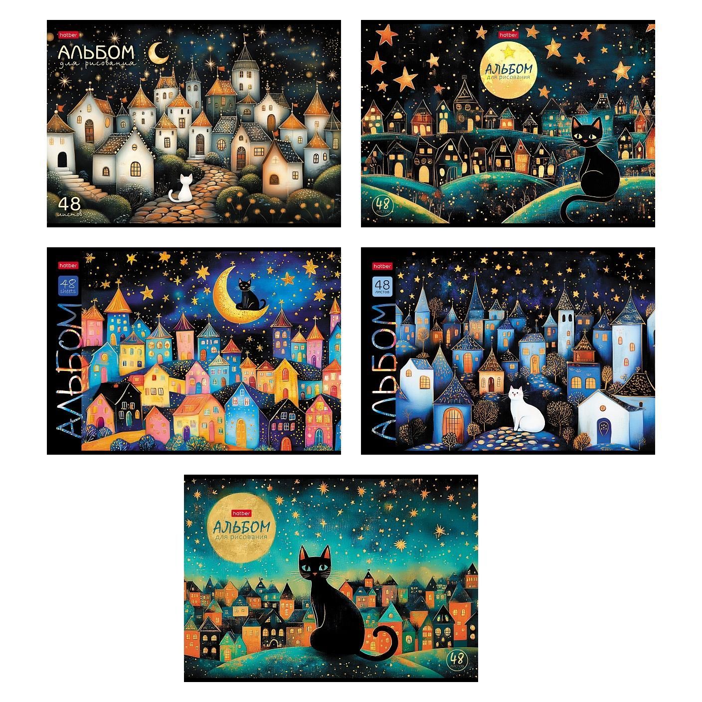 АЛЬБОМ для рисования 48л А4ф на скобе 5 диз.в блоке Пластиковая обложка серия -Лунный котик-