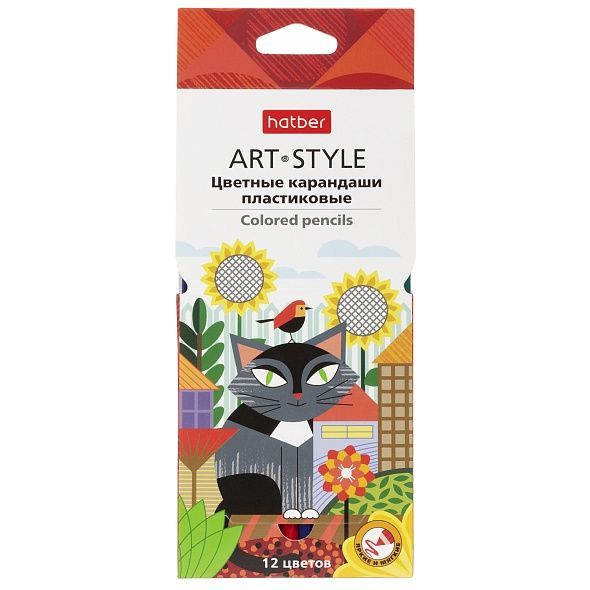 Карандаши цветные яркие пластиковые Hatber 12 цв. ART-STYLE заточен. в карт. короб. с европодвесом