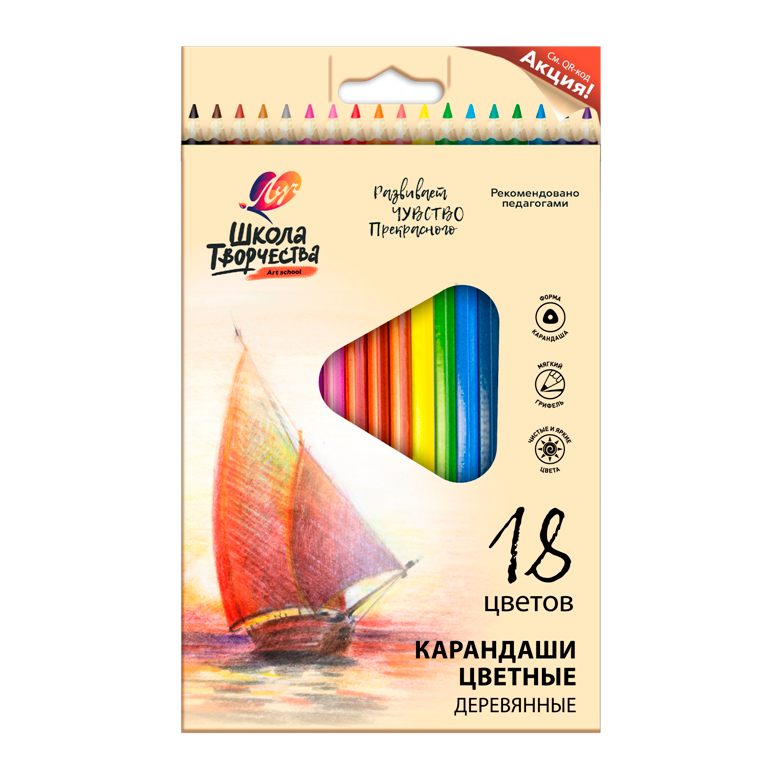 Карандаши цветные трехгранные Луч "Школа Творчества" 18 цветов