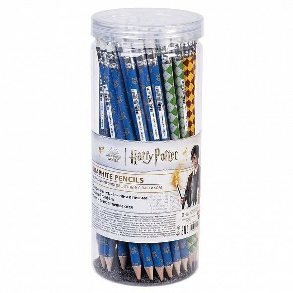 Карандаш чернографитный Hatber Гарри Поттер круглый корпус Ассорти `HB` с ластиком