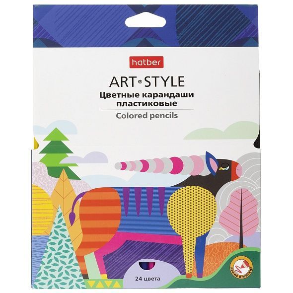 Карандаши цветные яркие пластиковые Hatber 24 цв. ART-STYLE заточен. в карт. короб. с европодвесом
