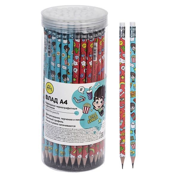 Карандаш чернографитн. Hatber -Влад А4- круглый корпус `HB` с ластиком заточен.