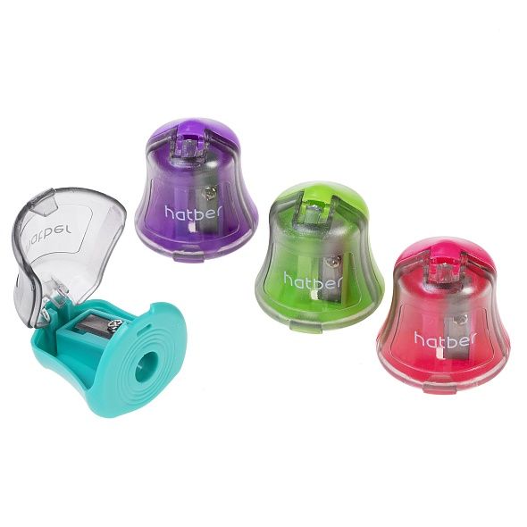Точилка Hatber BELL Пластиковая Цветная с контейнером-Ассорти- 4 цв.
