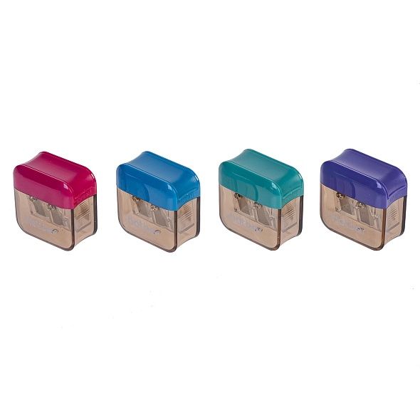 Точилка Hatber HIT Пластиковая Цветная с контейнером с 2-мя отверстиями-Ассорти- 4 цв. с крышкой 24шт в картонной Дисплей-витрине