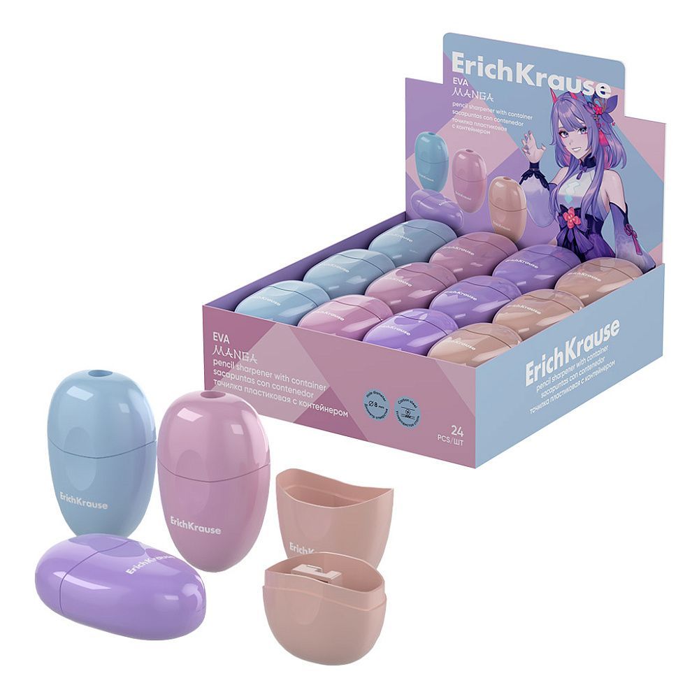 Точилка пластиковая ErichKrause Eva, Manga, с контейнером, ассорти