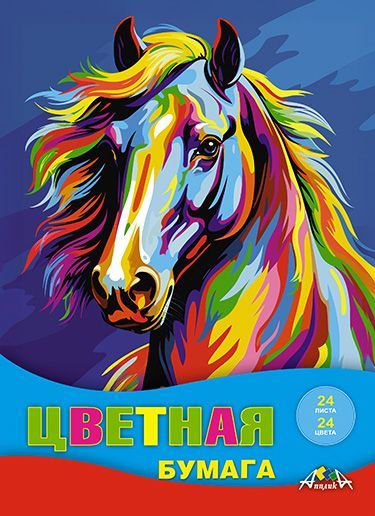 Цветная бумага А4 24л, 24цв. "Яркая лошадь"