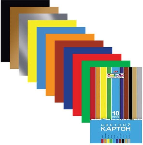 Набор картона цветной Мелованный 10л 10 цв. А4ф в папке -Creative Set-