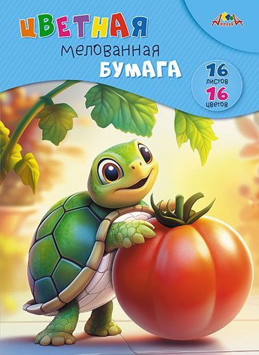 Цветная бумага мелованная А4 16л.,16цв."Черепашонок"
