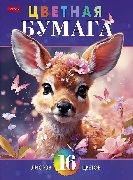 Набор бумаги цветной 16листов 16 цветов А4ф Бумага газетная -Олененок Бэмби-