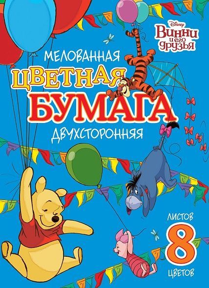 Набор бумаги цветной Мелованной Двухсторонней 8л 8 цв. А4ф -Винни и его друзья-(DISNEY)