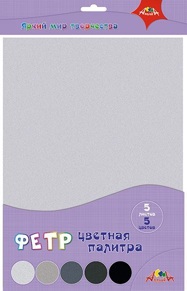 Фетр цветной 5листов 5цветов "Цветная палитра. Серый"